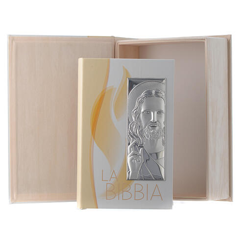 Bibel, St. Paul Edition, aus Kunstleder, mit Hülle und dem Motiv von Jesus Christus aus Silber-Laminat gefertigt.