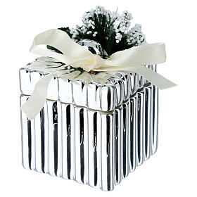 Quadratische silberne Schachtel mit Schleife und Blumendekor 5x5 cm Bagutta