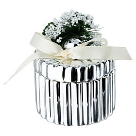 Runde versilberte Schachtel mit Schleife und Blumendekoration 6 cm Bagutta
