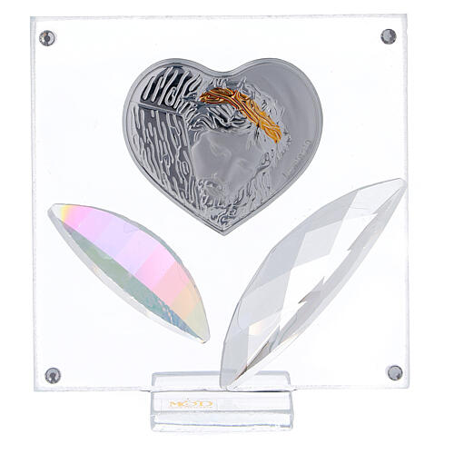 Bild Christus auf Silber-Laminat in Herzform.