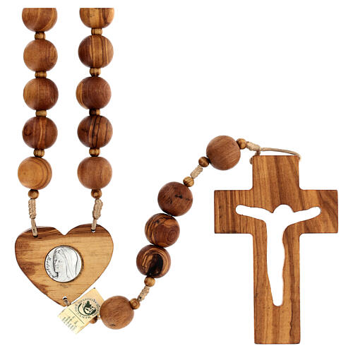 Schlafzimmer-Rosenkranz Madonna aus Olivenholz Medjugorje 3 cm Perlen.