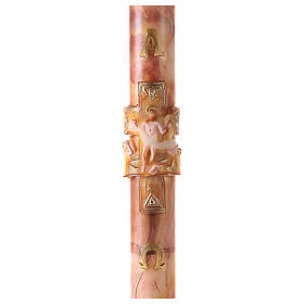 Osterkerze, Alpha und Omega, Kreuz, Lamm, rosa marmoriert, 120x8 cm