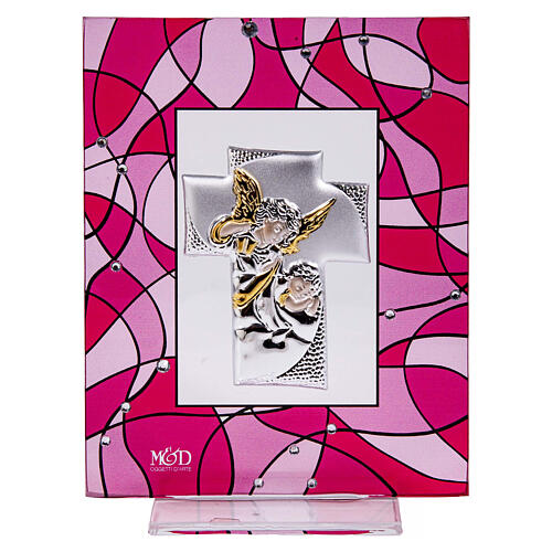 Bildchen als Gastgeschenk mit rosa Engel 7x10 cm Taufe