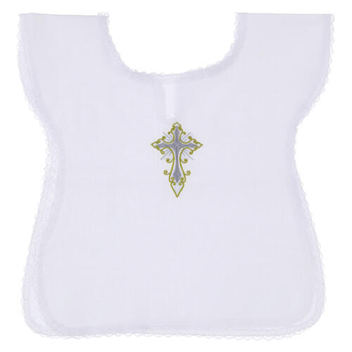 Taufhemd aus Leinen-Baumwoll-Mix mit grau-goldenem Kreuz bestickt