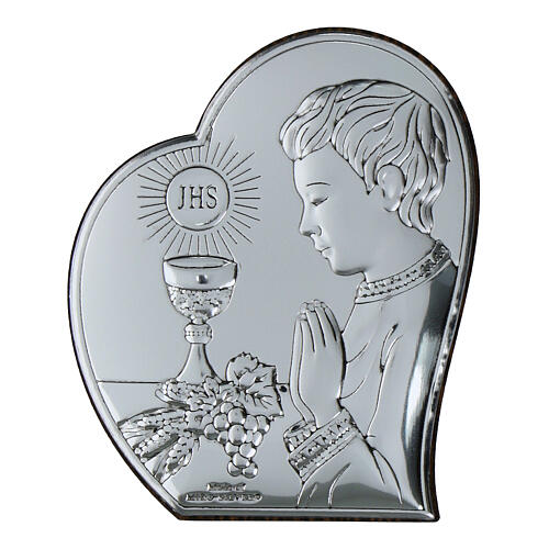 Bild Erstkommunion Junge – Herzform, Bilaminat silberfarben, Valenti Argenti