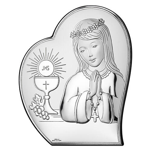 Bild Erstkommunion Mädchen – Herzform, Bilaminat silberfarben, Valenti Argenti