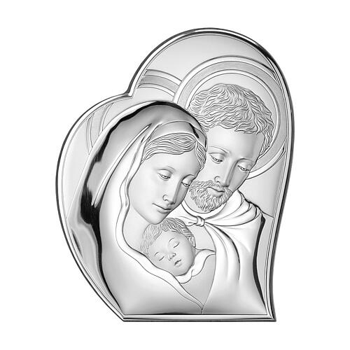 Bild Heilige Familie – Herzform, Bilaminat silberfarben, Valenti