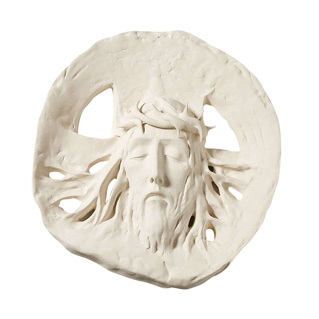 Handgemachtes Basrelief aus weißem Schamotteton, mit Bild "Ecce Homo", hergestellt in Italien.