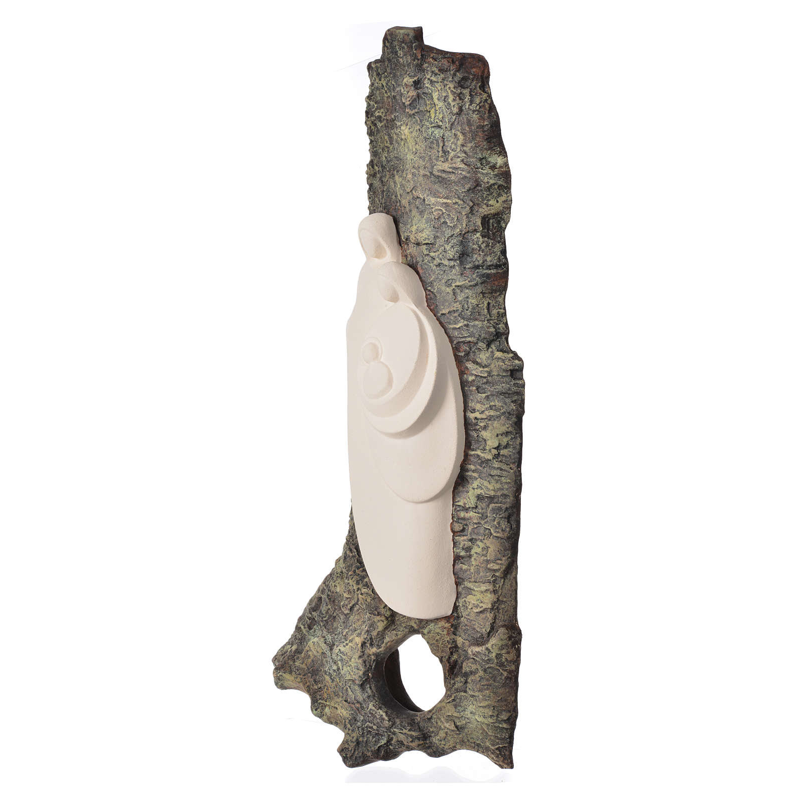 Handgemachtes Basrelief aus weißem Schamotteton mit Farbe im Hintergrund, hergestellt in Italien.