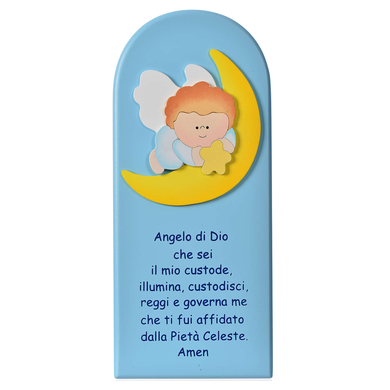 Basrelief-Tafel Engel auf Mond, aus Holz