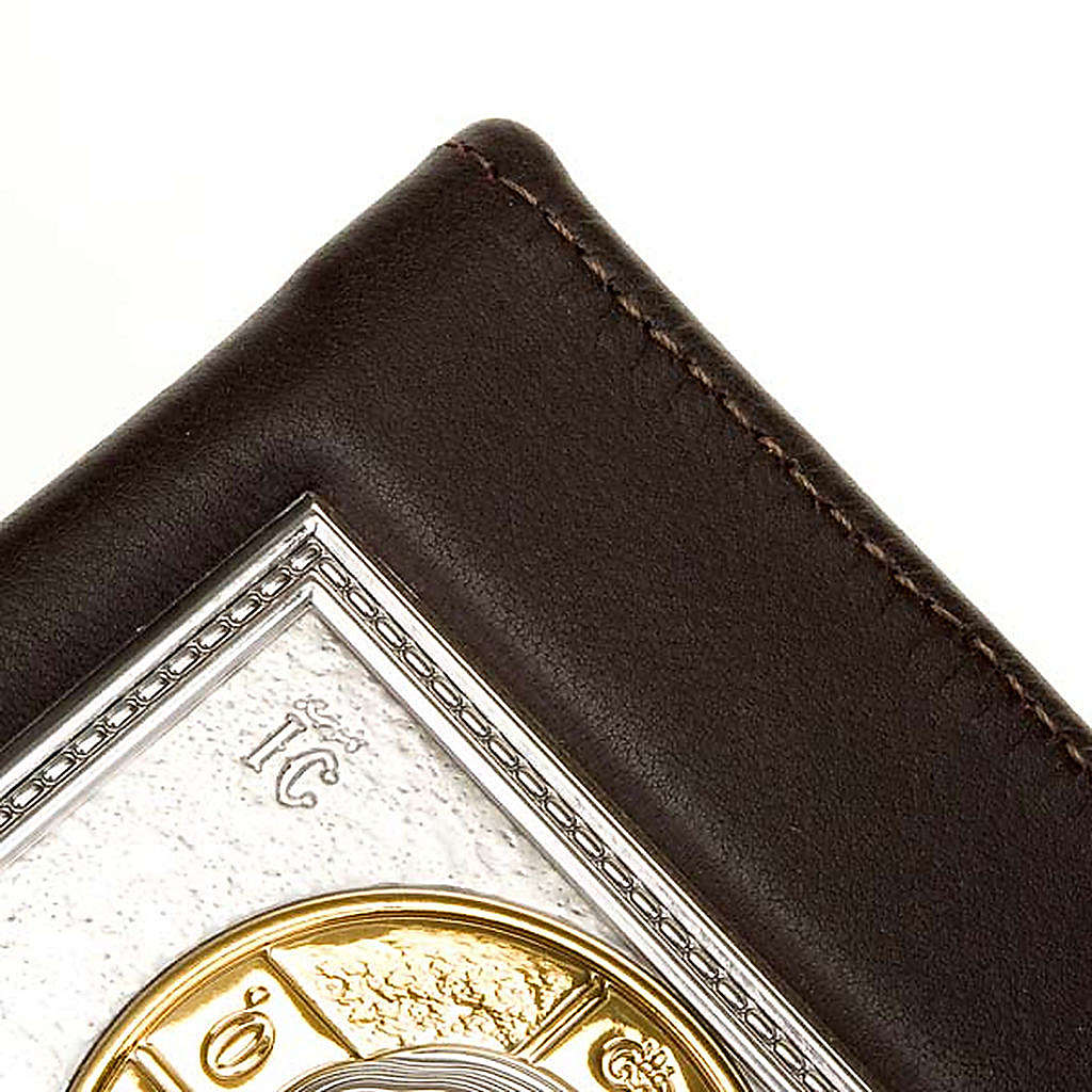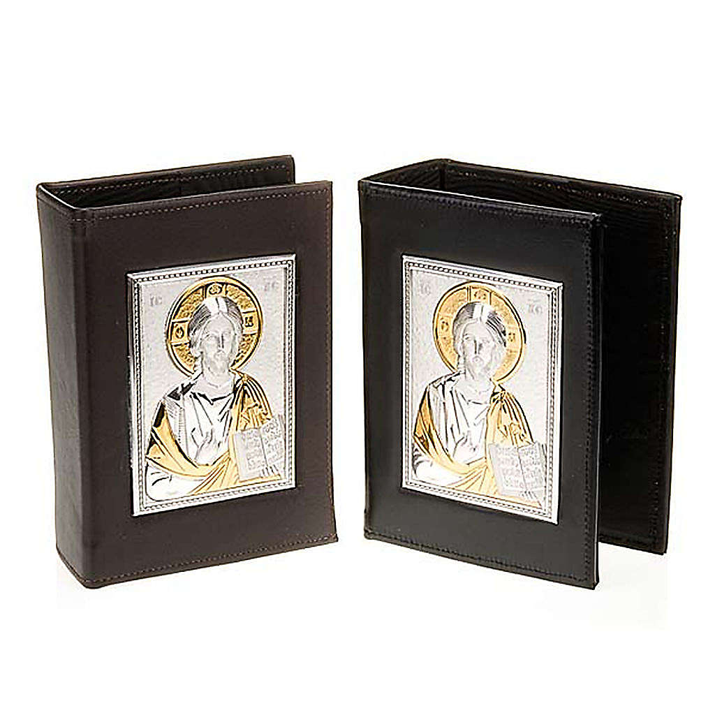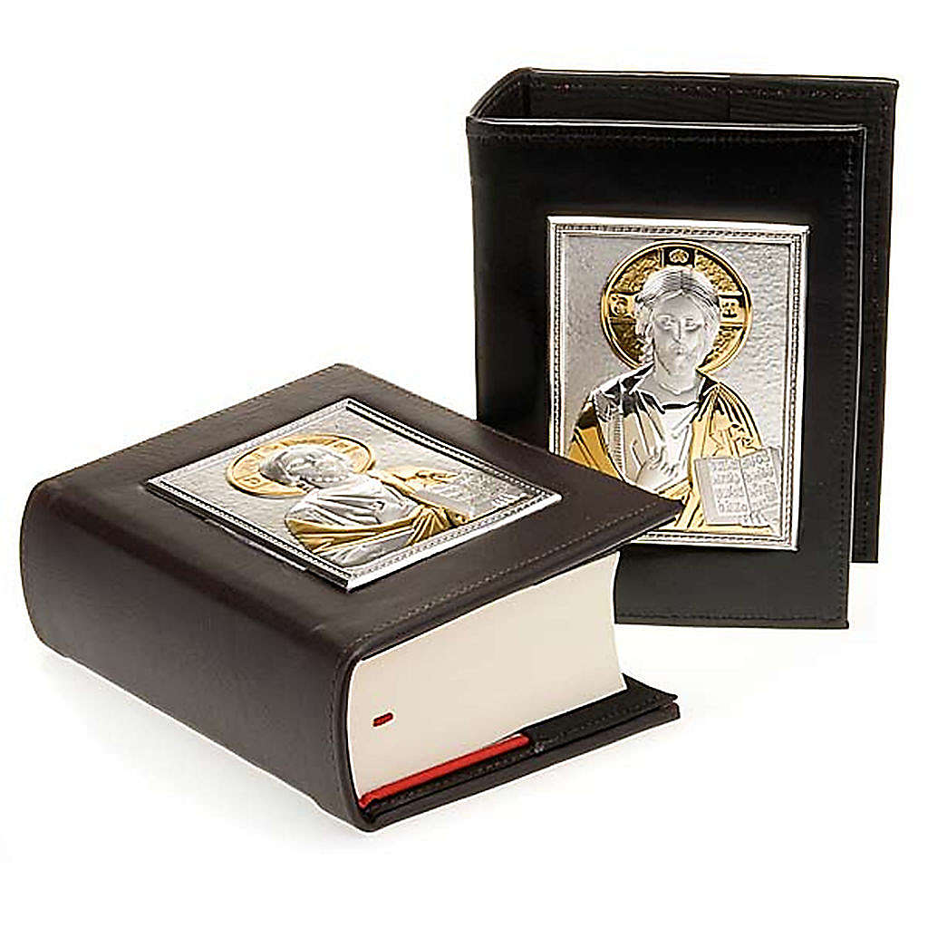 Deckel fuer Jerusalem-Bibel, aus echten Leder mit einer Platte aus Silber und Gold. Es zeigt die Geschichte von Kristus. Drin gibt es eine harte Stoffe. Die moeglichen Farben sind: Braun und Schwarz. Man kann unten den Bilder waehlen.