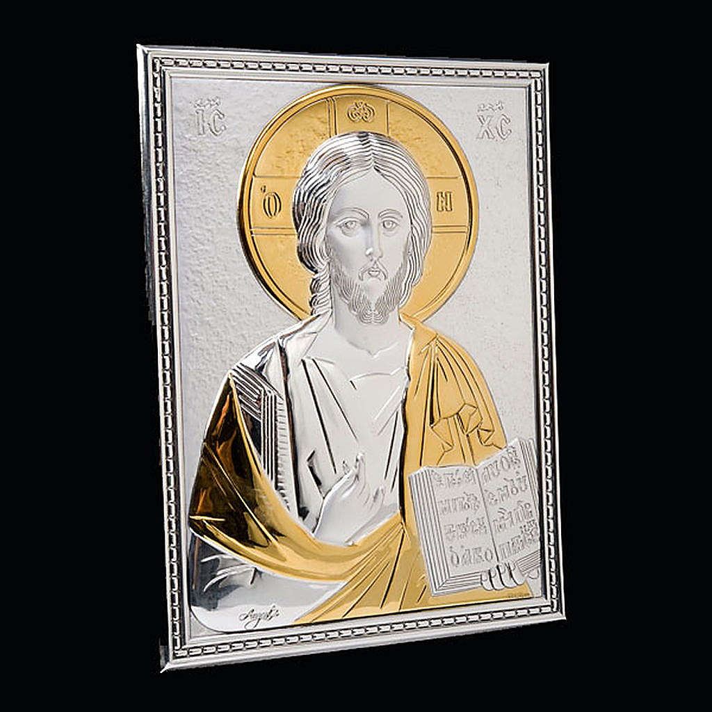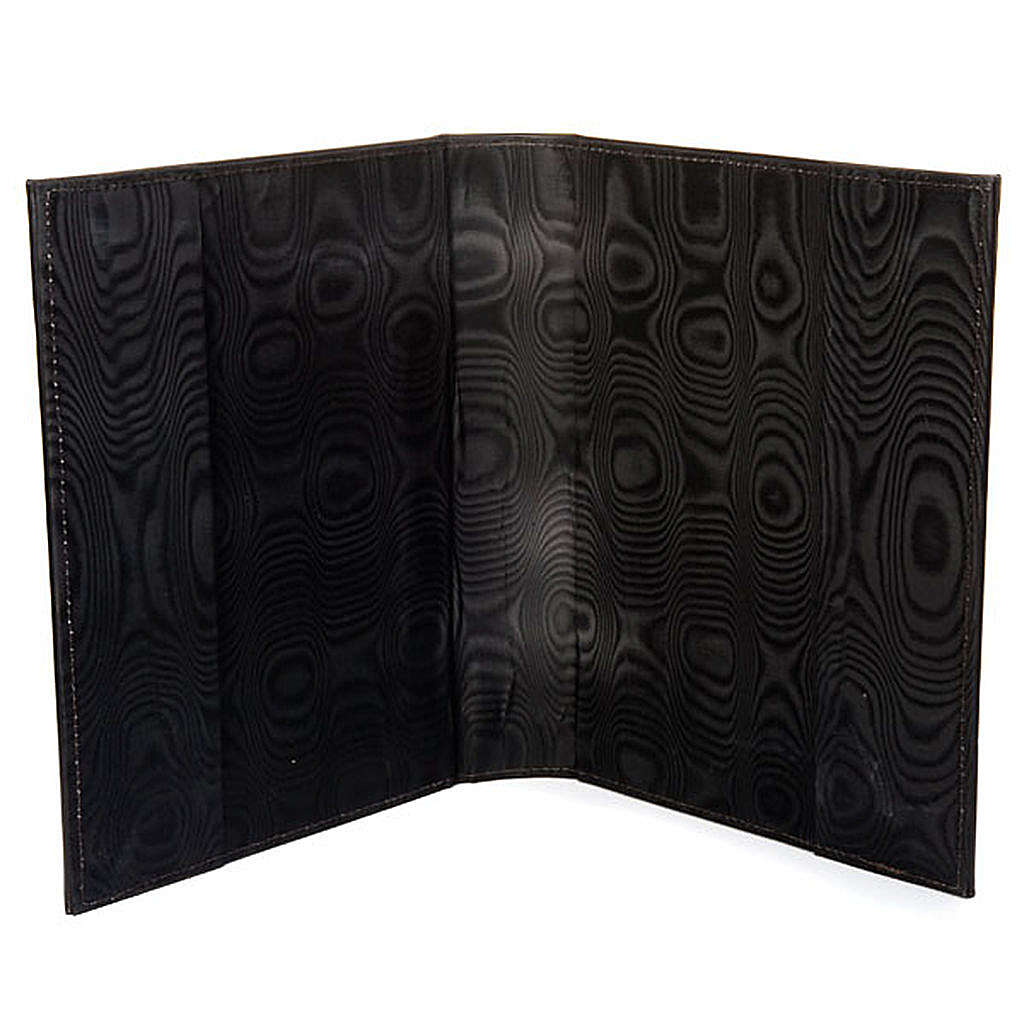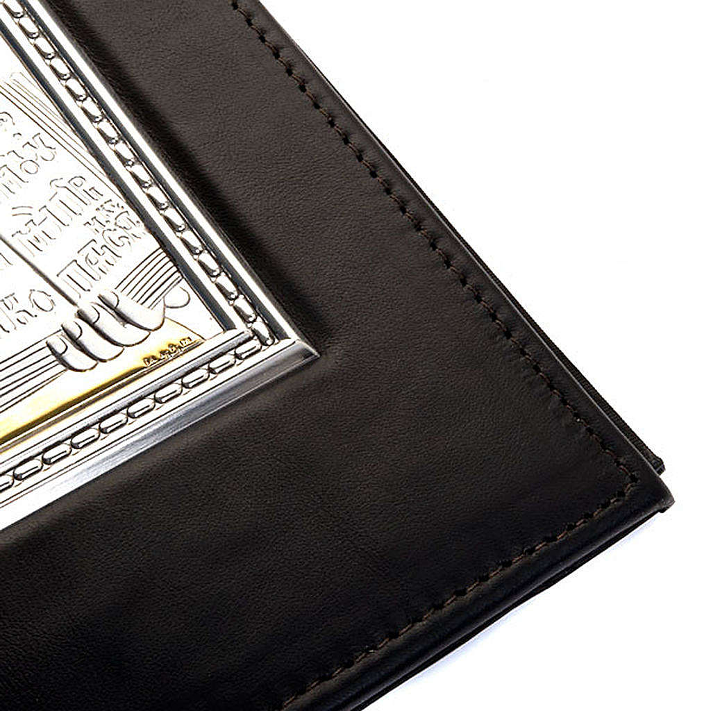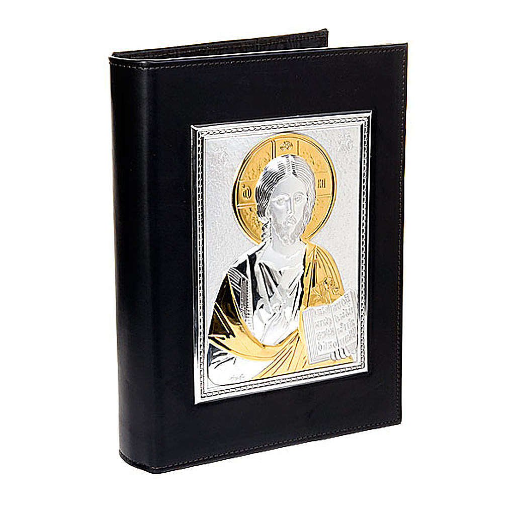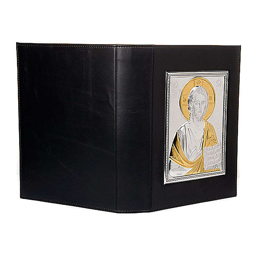 Schwarze Lektionareinband aus Leder fuer Festliche Lektionar ABC Vatikan-Ausgabe mit silbrigen und vergoldeten Platte dass den Kristus Pantocratore zeigt. Drin ist es braune Satin.