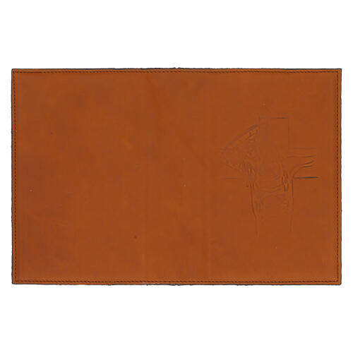 Einband fűr Liturgie (4 Bänder) aus braunem Echtleder mit eingeprägtem Christus.