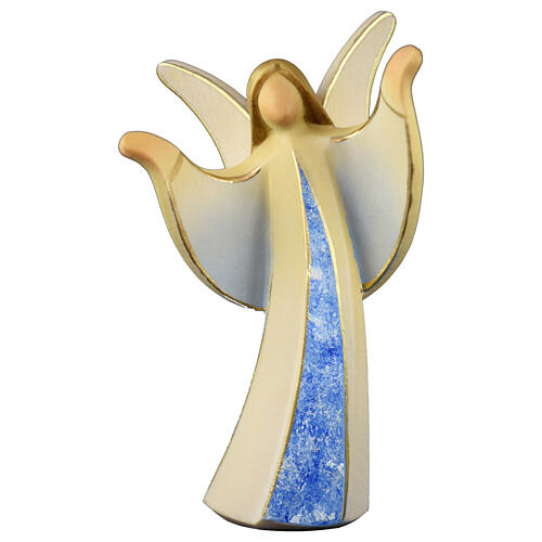 Blauer Marmorengel Aram mit offenen Armen Grödnertal Holz.