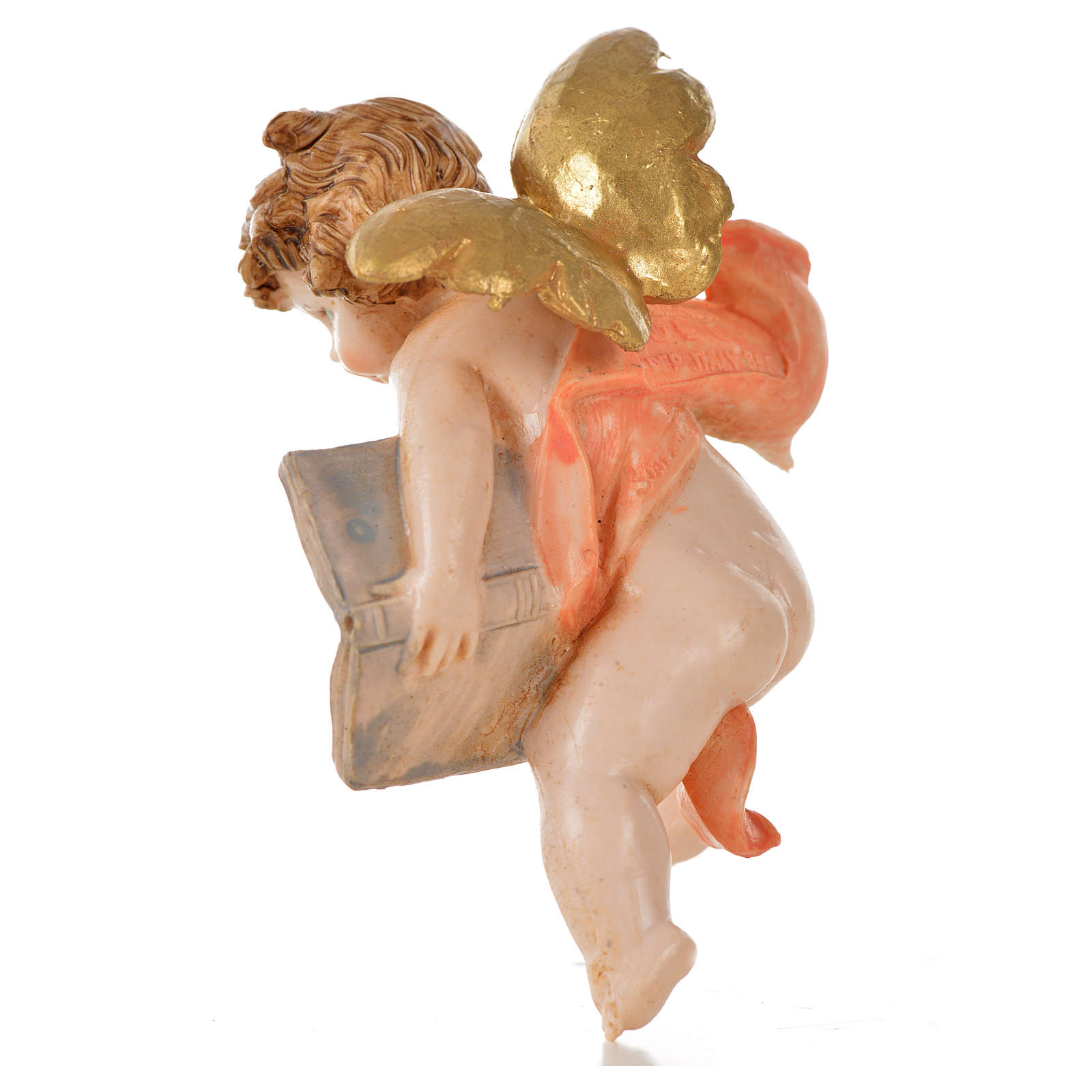 Engel mit Buch rosa, zum Aufhängen, 7 cm, ähnlich zu Porzellan. Statuette aus PVC, handgemacht und handgemalt in Italien.