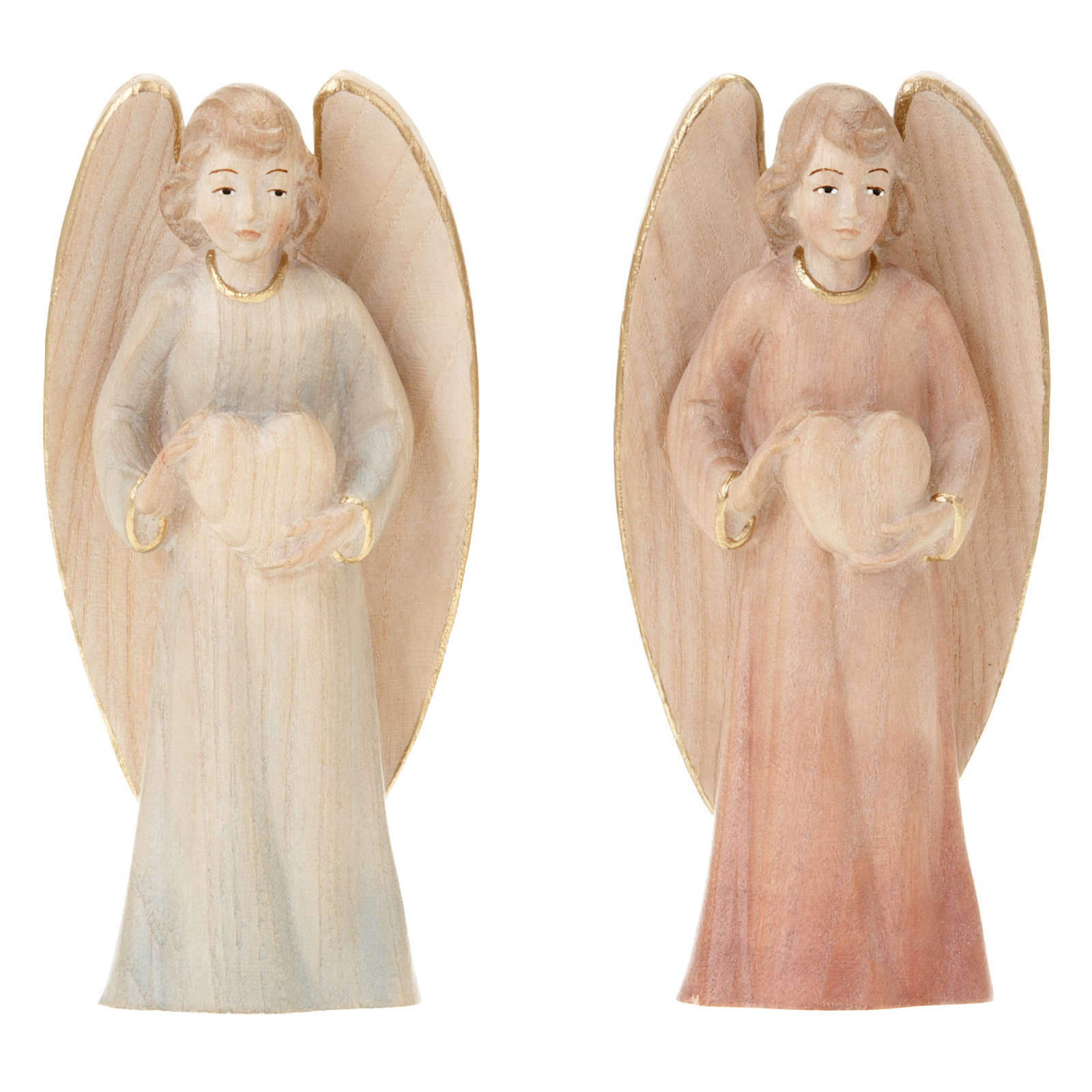Engel mit einem Herz: Statue aus Ahorn-Holz, von Handwerken aus Valgardena handgeschnitzt und handgemalt. Man werden die Oel-Farben verwendet um die typischen Holz-Streifungen nicht zu verstecken. Die Kleidungen konnen hell Blau oder Rosa sein. Es kann eine schoene Dekoration fuer das Haus sein, es ist einfach und passt zu jedem Zimmer und nicht nur zu dem Weihnachtszeit. Es kann ein schoenes Geschenk sein.