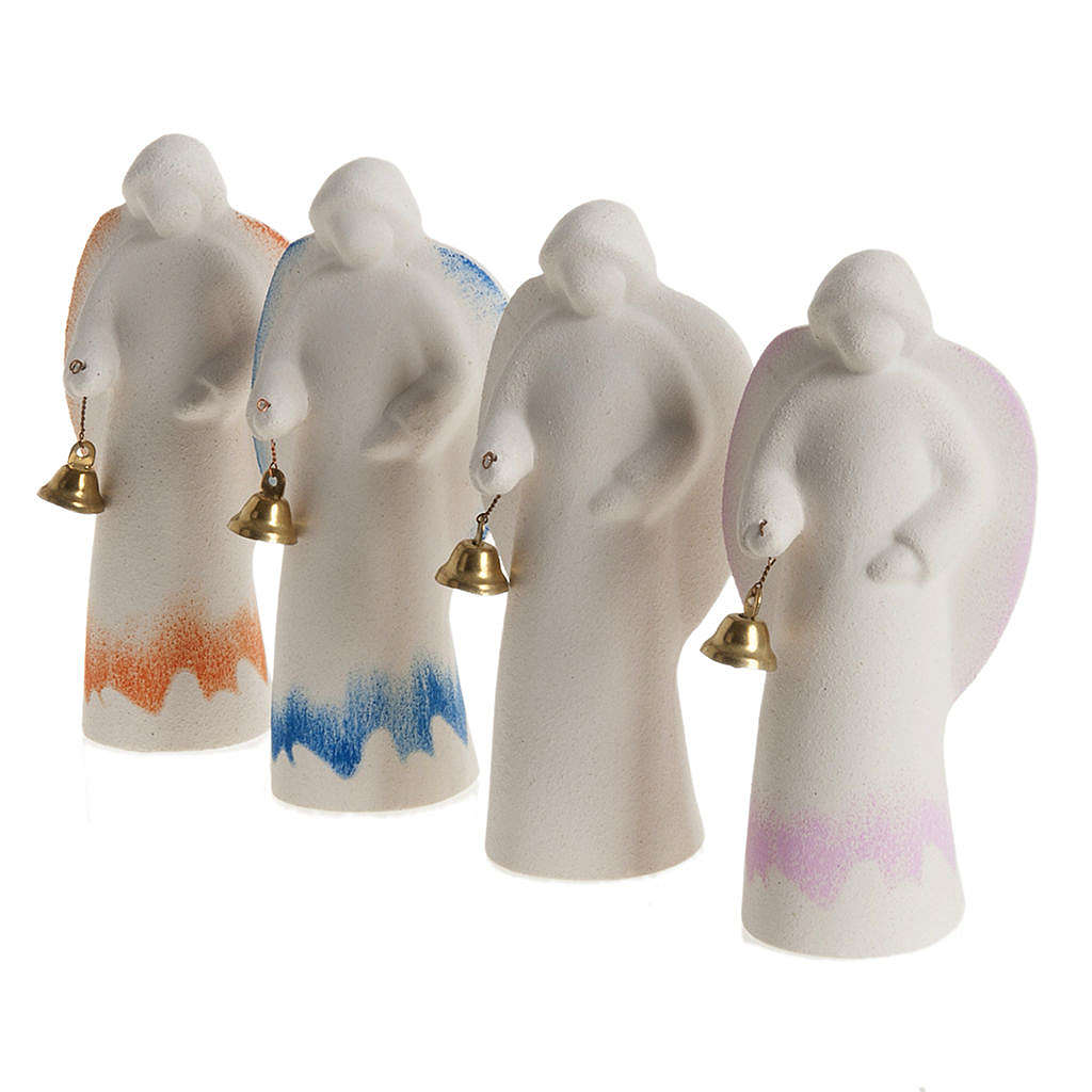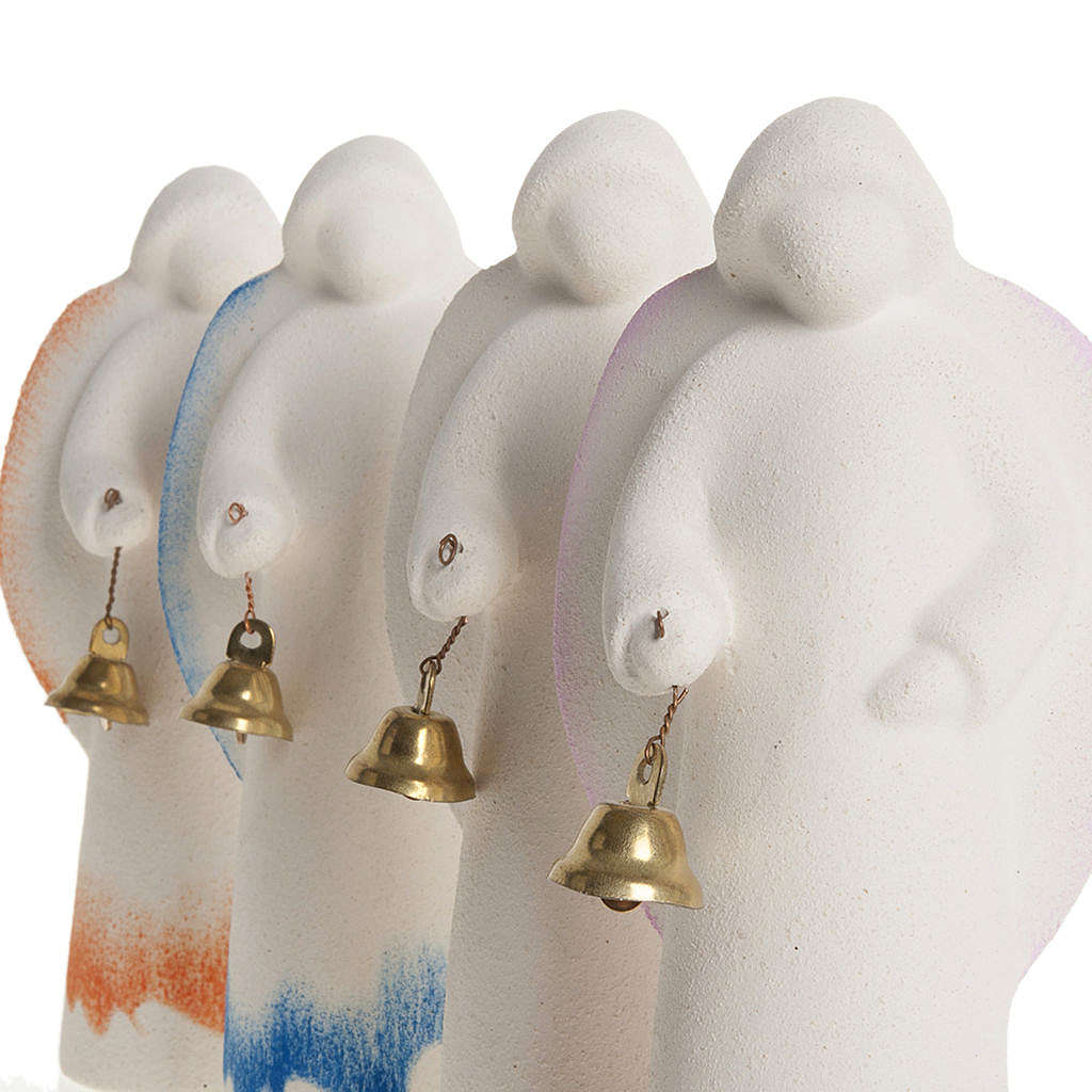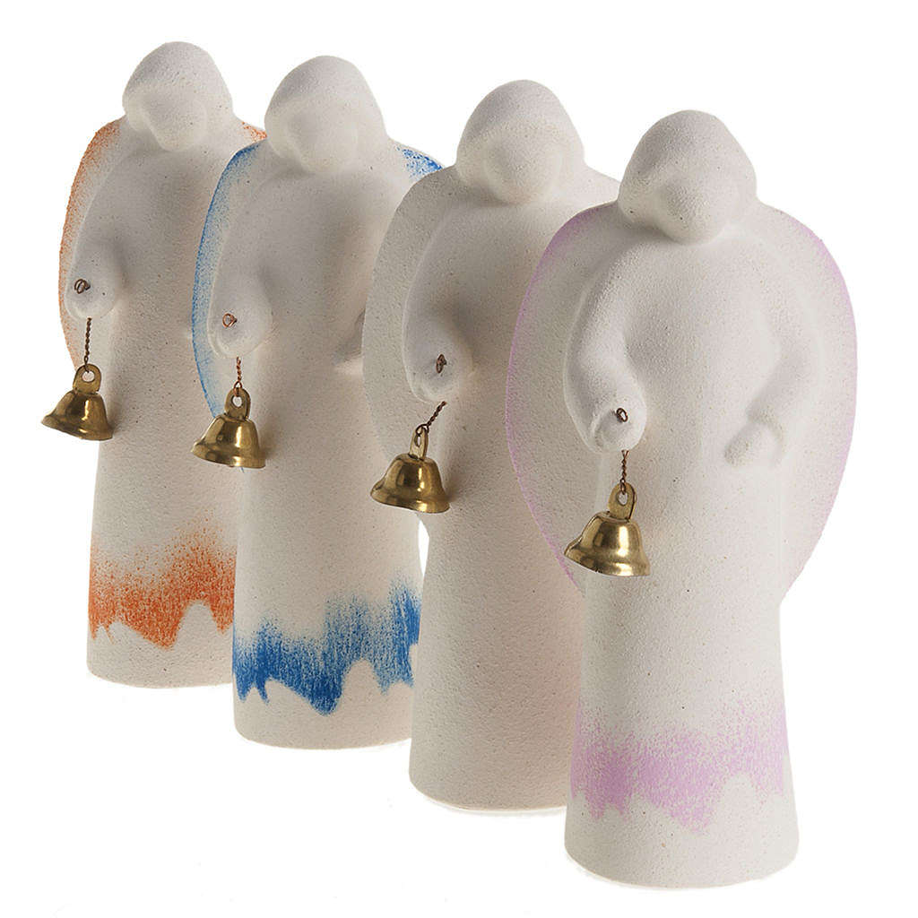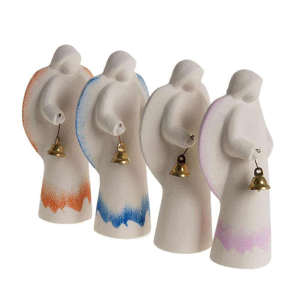 Engel mit Klingel aus Schamott, stilisierte Figur. Der Ton wird zuerst handgearbeitet und dann bei über 1000 °C gebrannt. Hochwertiges Produkt, bei Centro Ceramiche in Loppiano (Florenz) hergestellt.