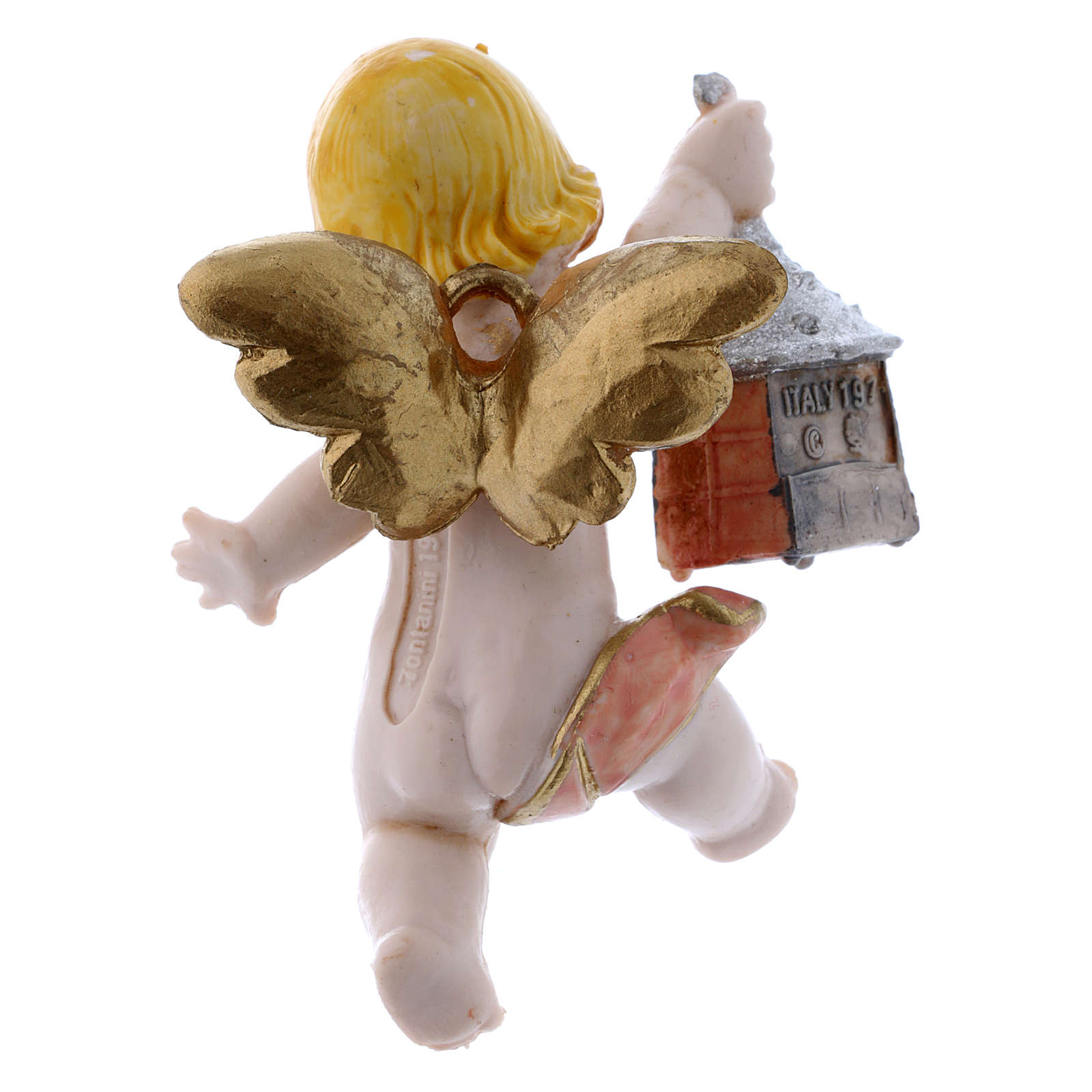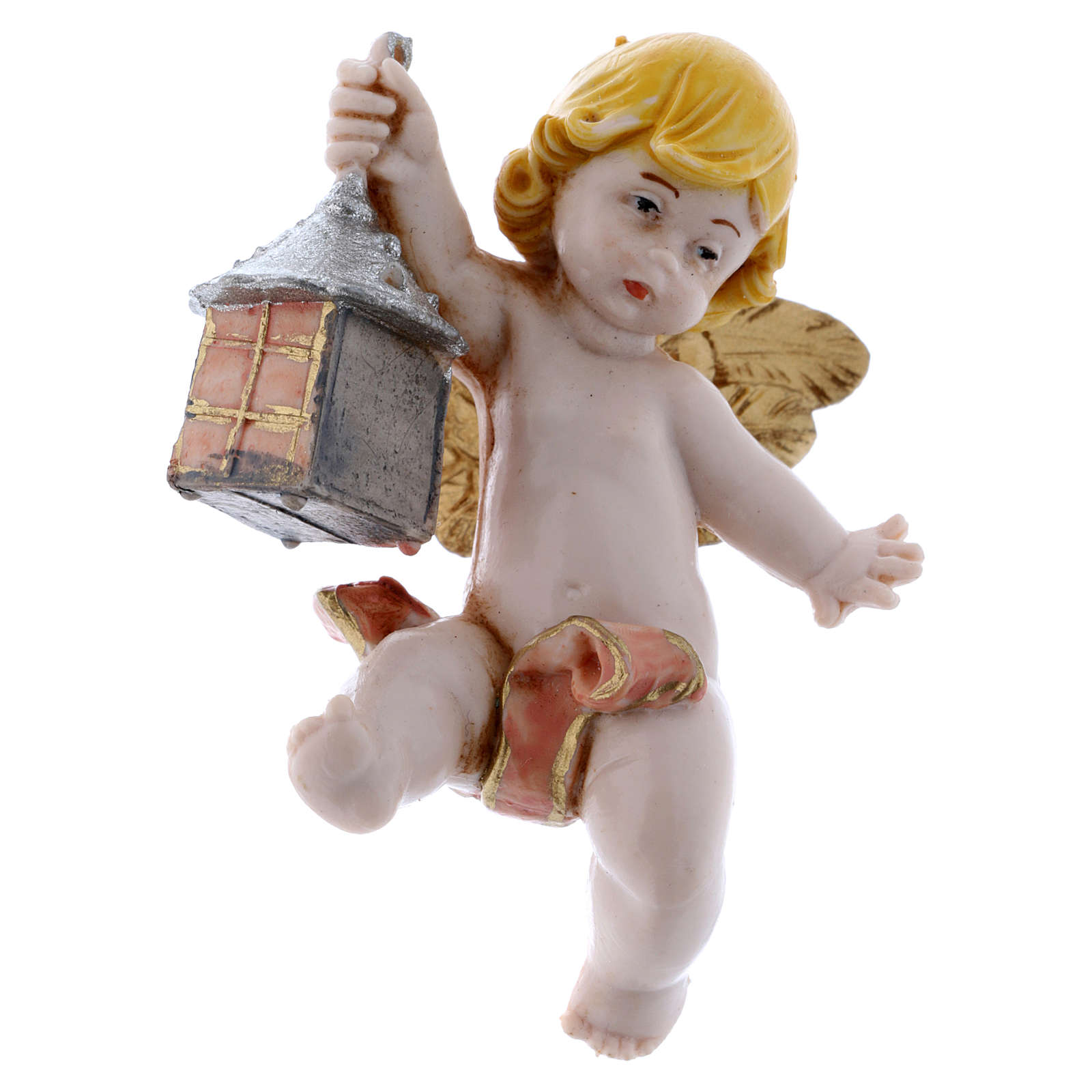 Engel mit Laterne rosa Fontanini 7 cm, ähnlich zu Porzellan. Statuette aus PVC, handgemacht und handgemalt in Italien.