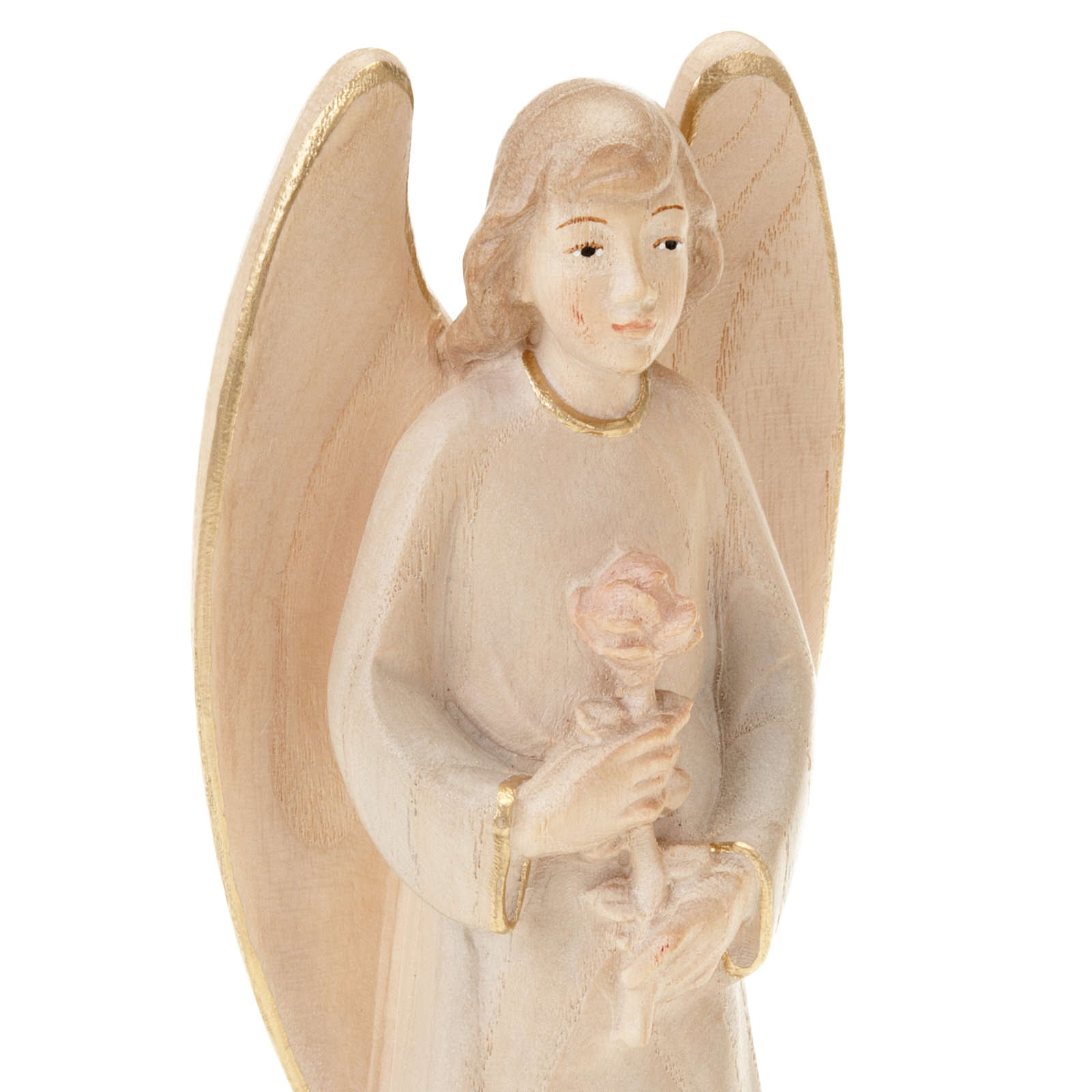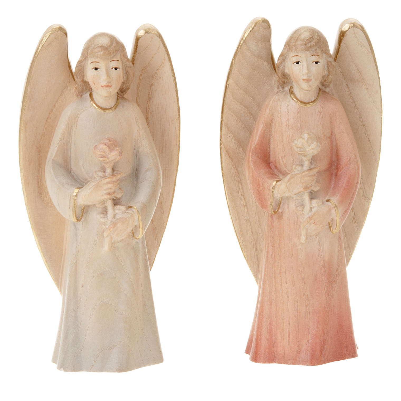 Engel mit einer Rosa: Statue aus Ahorn-Holz, von Handwerken aus Valgardena handgeschnitzt und handgemalt. Man werden die Oel-Farben verwendet um die typischen Holz-Streifungen nicht zu verstecken. Die Kleidungen konnen hell Blau oder Rosa sein. Es kann eine schoene Dekoration fuer das Haus sein, es ist einfach und passt zu jedem Zimmer und nicht nur zu dem Weihnachtszeit.