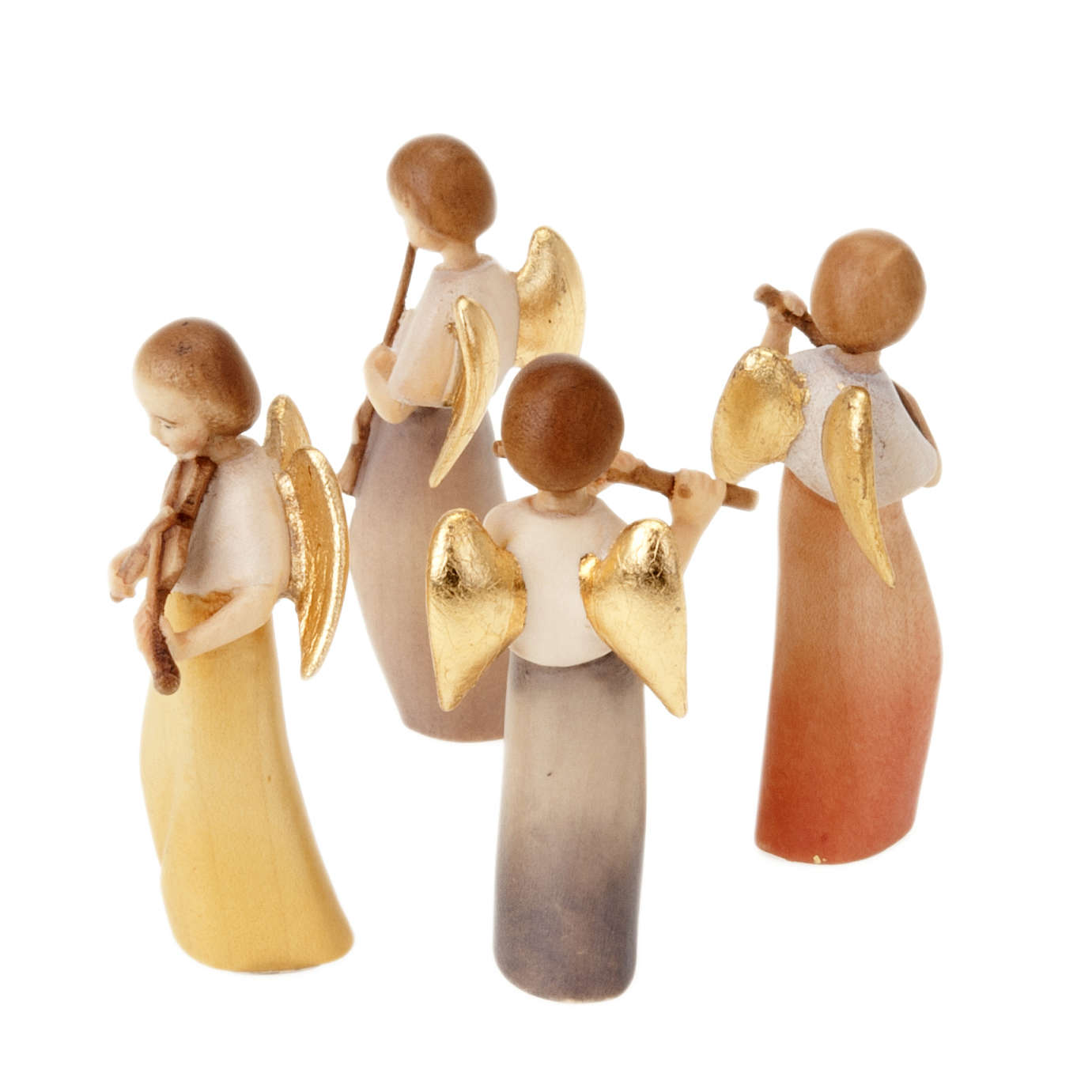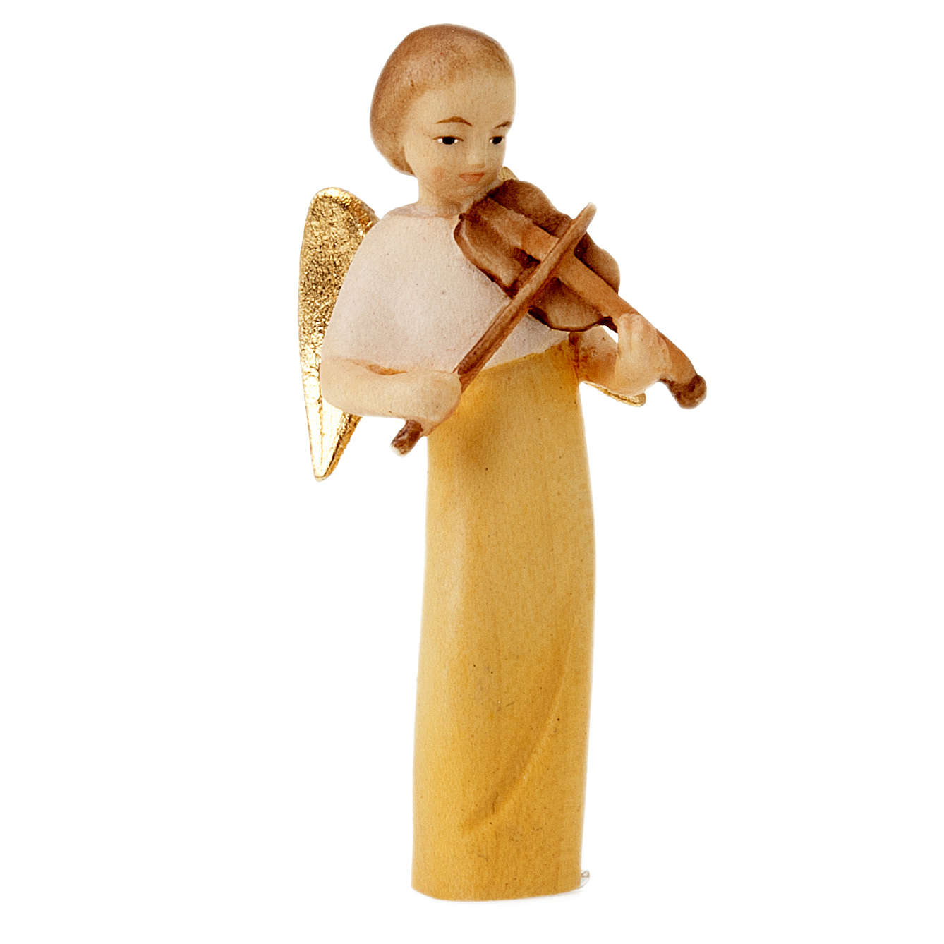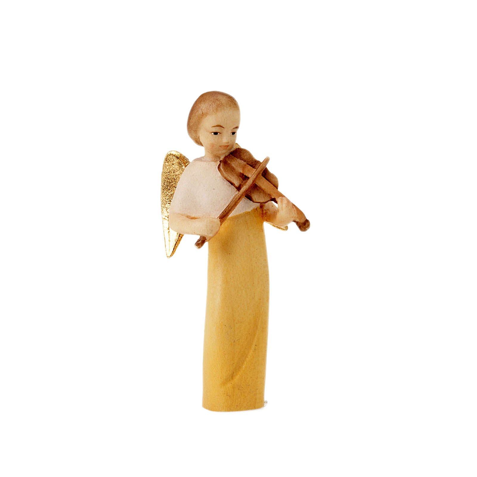 Statue aus Ahorn-Holz, von Handwerken aus Valgardena handgeschnitzt und handgemalt. Sie ist ein klein Engel dass mit Froh singt. Es kann eine schoene Dekoration fuer das Haus oder fuer die Weihnachtsbaum sein, es ist einfach und passt zu jedem Zimmer und nicht nur zu dem Weihnachtszeit. Das Engel kann aus Blau gekeidet sein und ein Querfloete singen, kann aus Gelb gekleidet sein und eine Violine singen oder kann es aus Blau gekleidet sein und eine Floete singen; man kann unten dem Bild waehlen.