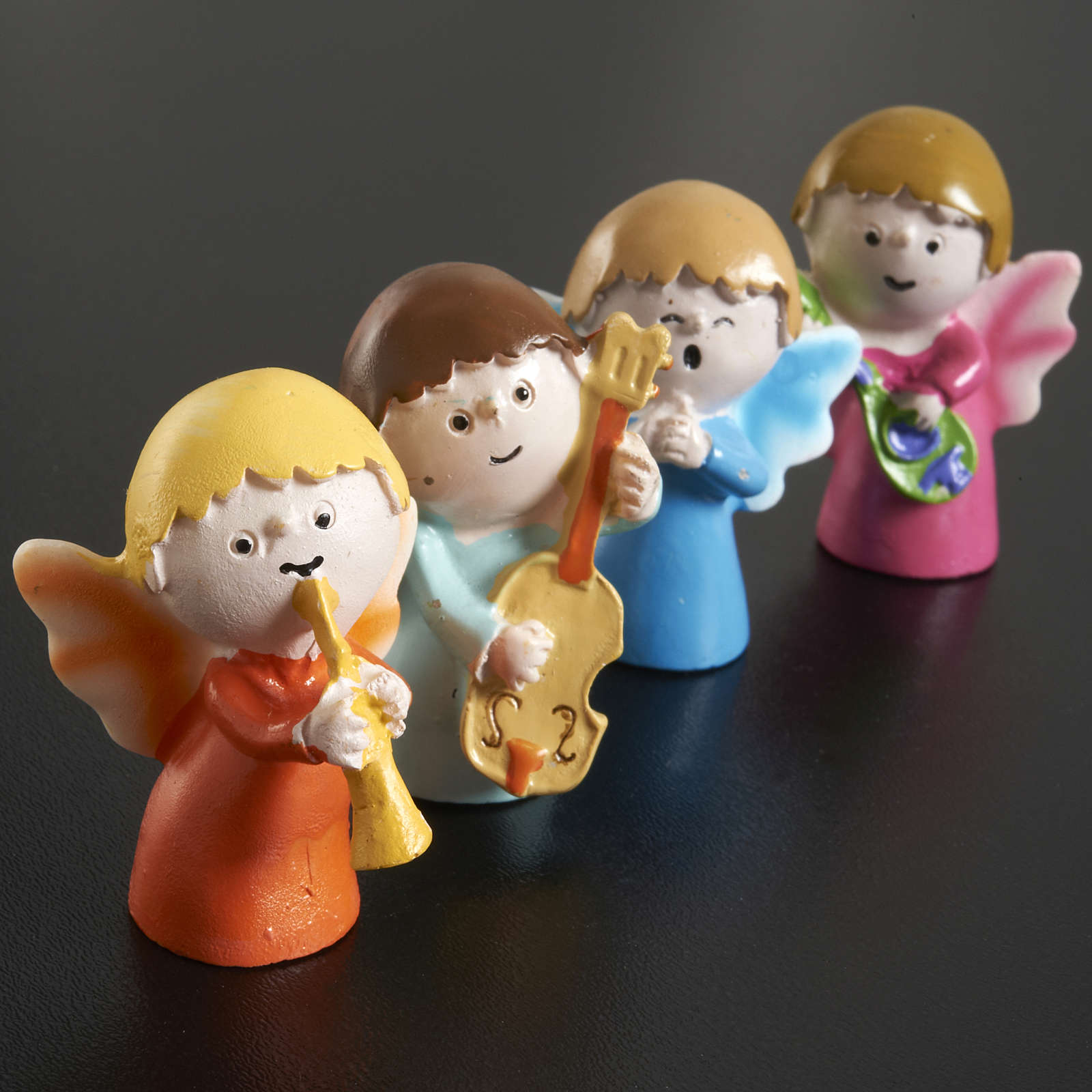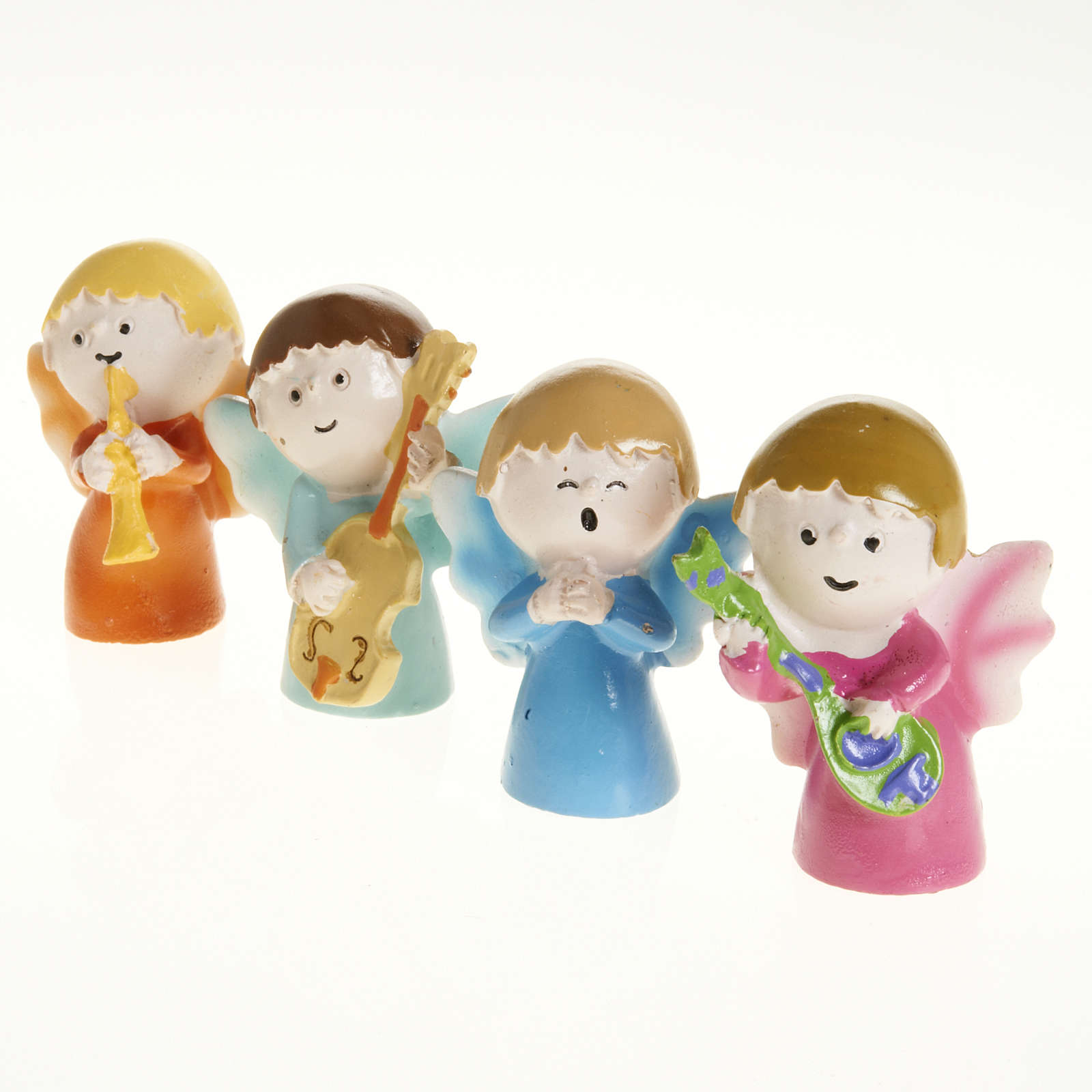 Musiker-Engel aus Harz, 4 Stücke. Dieses Design wurde von der italianischen Künstlerin Cortesi geplant.