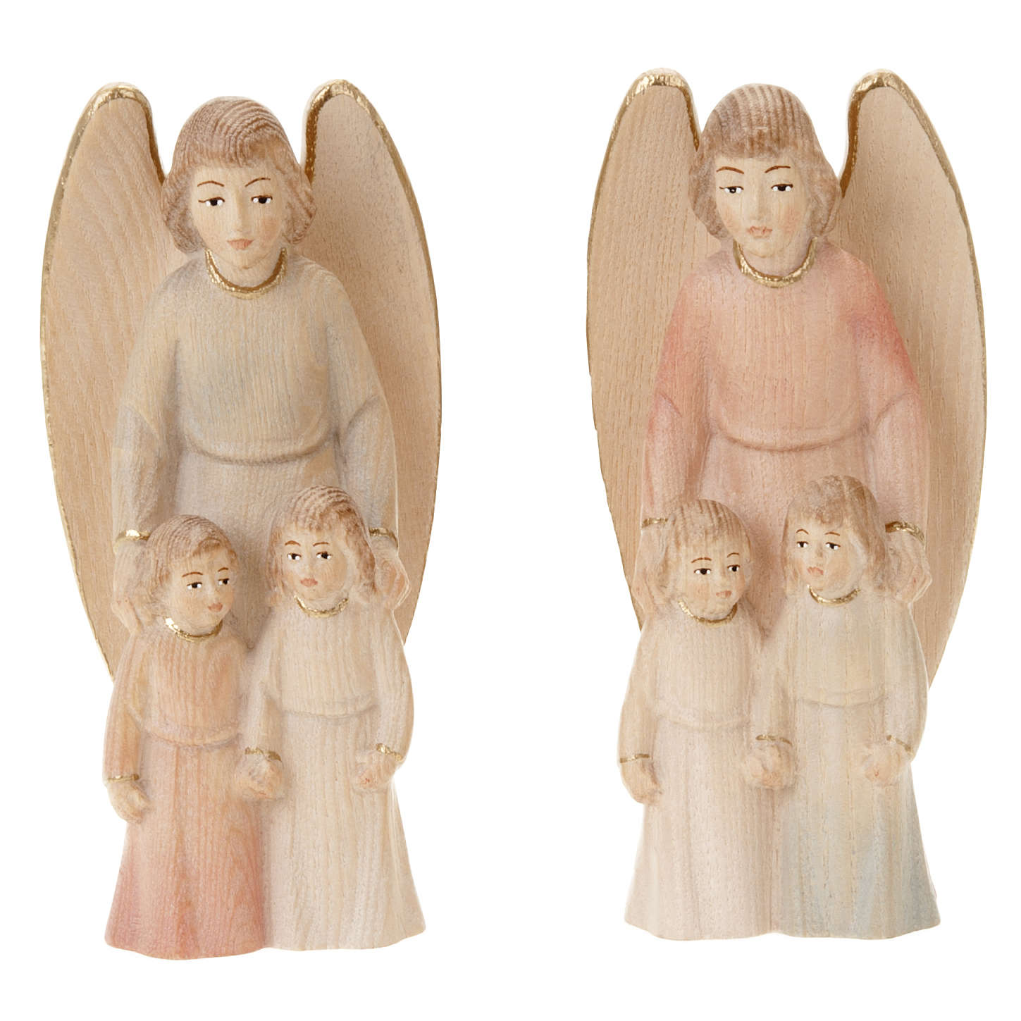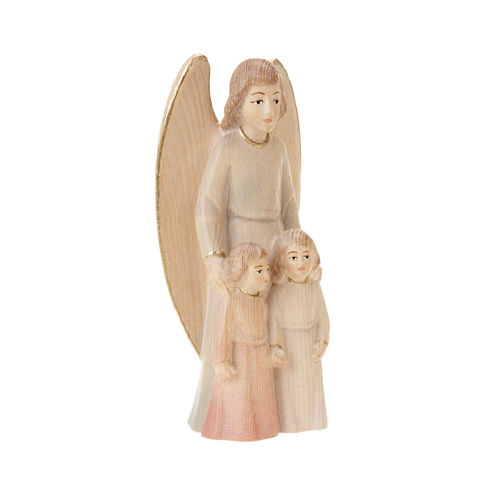Schutzengel mit den Kindern: Statue aus Ahorn-Holz, von Handwerken aus Valgardena handgeschnitzt und handgemalt. Man werden die Oel-Farben verwendet um die typischen Holz-Streifungen nicht zu verstecken. Die Kleidungen konnen hell Blau oder Rosa sein. Es kann eine schoene Dekoration fuer das Haus sein, es ist einfach und passt zu jedem Zimmer und nicht nur zu dem Weihnachtszeit. Es kann ein Geschenk fuer ein Geburt oder ein Taufe sein.