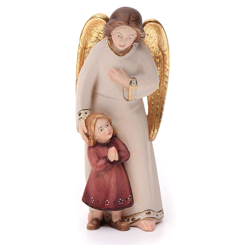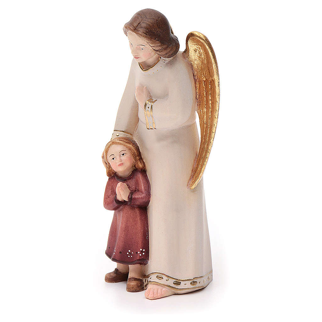 Schutzengel mit Mädchen, moderner Stil. Engel aus Holz, von Hand geschnitzt und bemalt von den Handwerker des Grödnertals. Verschiedene Größen verfügbar. Andere Ausführungen aus Wunsch.