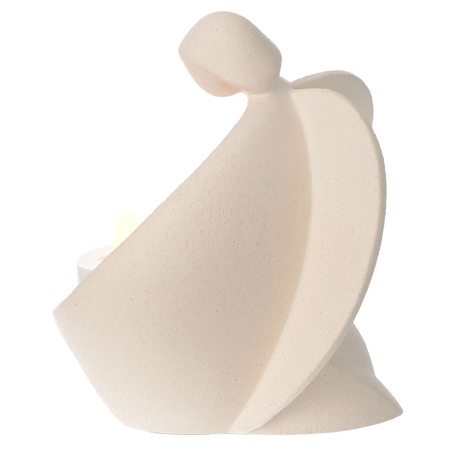 Wachender Engel aus weißem Schamotte.