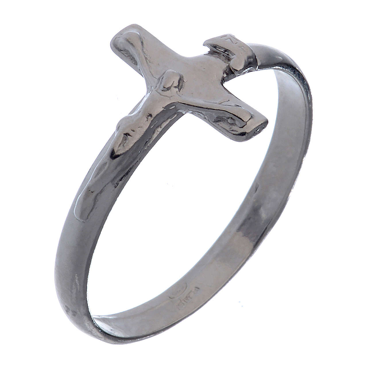 Anello in argento semplice ma raffinato e fine. Mi piaceva l'idea di avere Gesù crocifisso sempre sotto gli occhi, cosa che con una collana non era possibile, per ricordare quanto amore ci ha donato e quanto anche noi siamo chiamati a fare con le nostre mani. Una bella idea anche regalarlo a chi magari sta passando un momento di sofferenza.