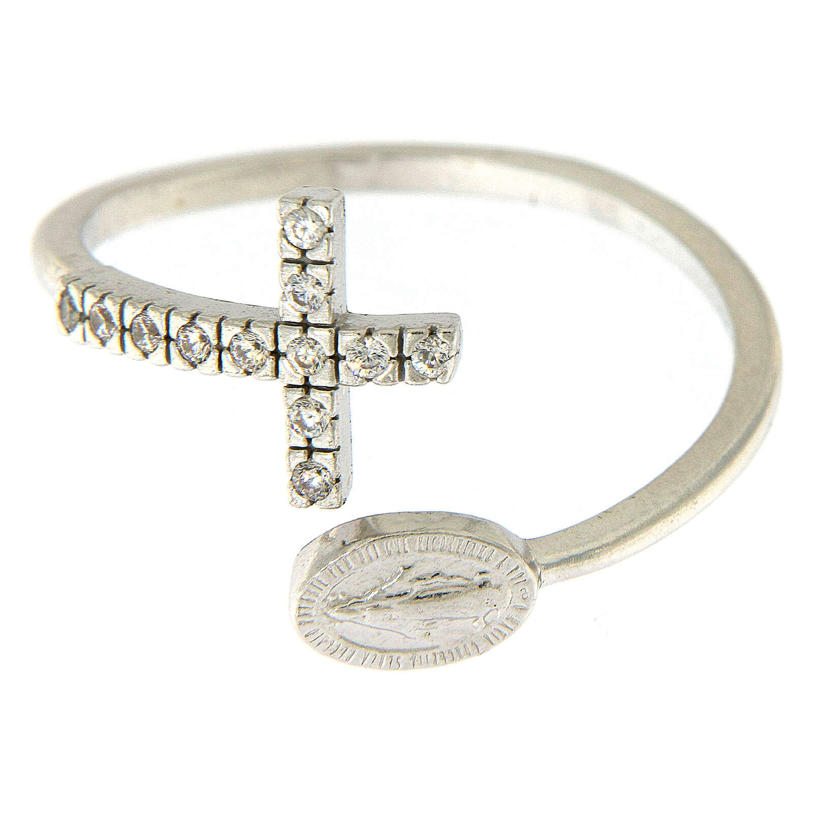 Ring Silber 925 wunderbare Medaille und Kreuz mit Zirkonen