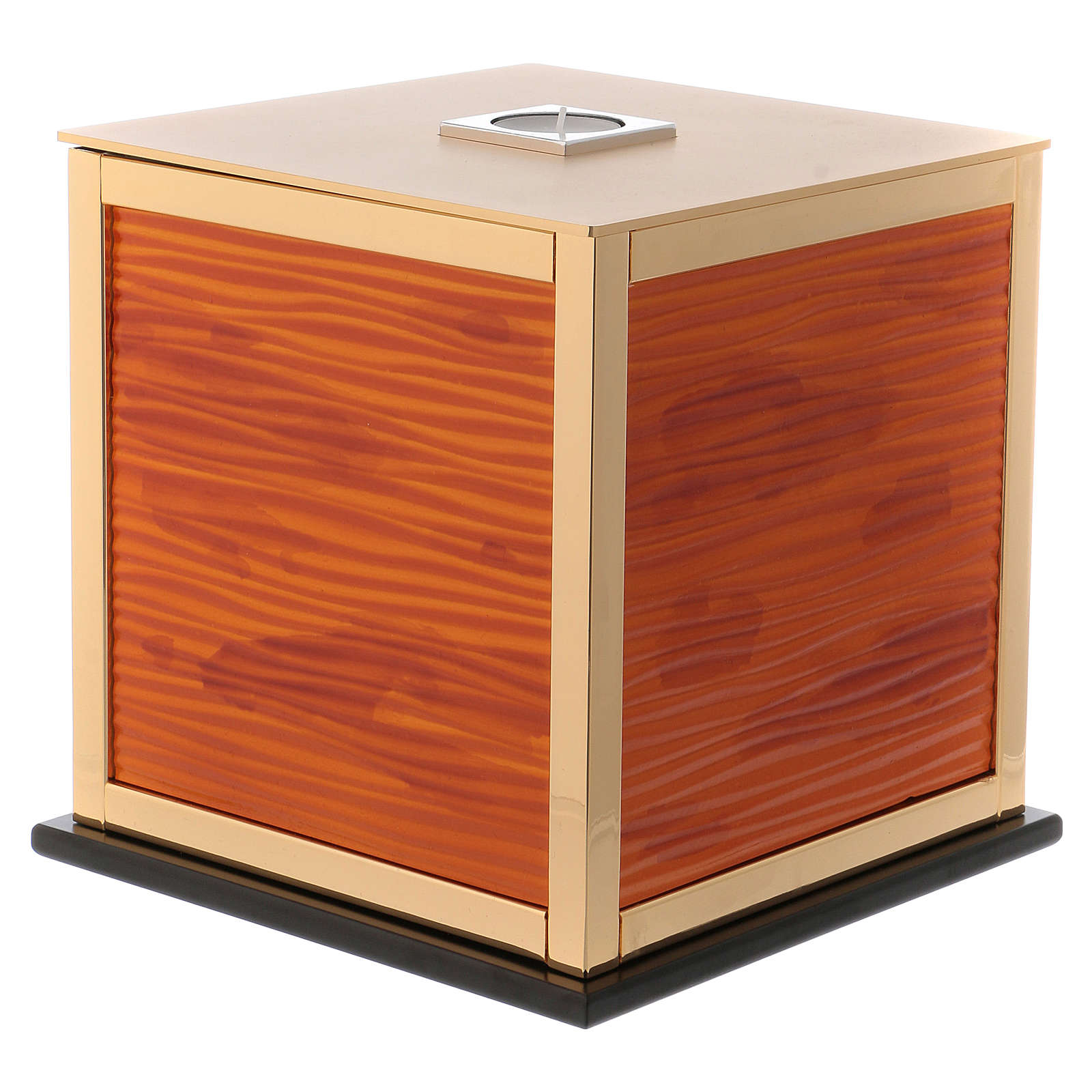 Aschenurne Ray C. Aschenurne realisiert aus vergoldeten Metall, und der Deckel ist mattiert. Die vier Seiten sind mit Emaillack mit Siena Natur Effekt gemalt.