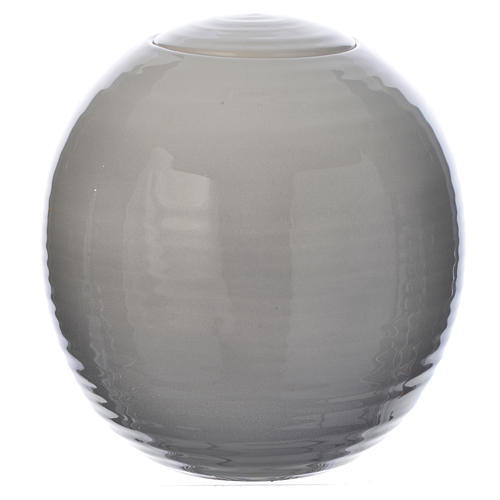 Aschenurne Porzellankderamik Mod. Weiss Murano. Aschenurne realisiert mit Drechselarbeit in Italien, und mit weißen und grauen Emaillack Effekt Murano Glas verfeinert.