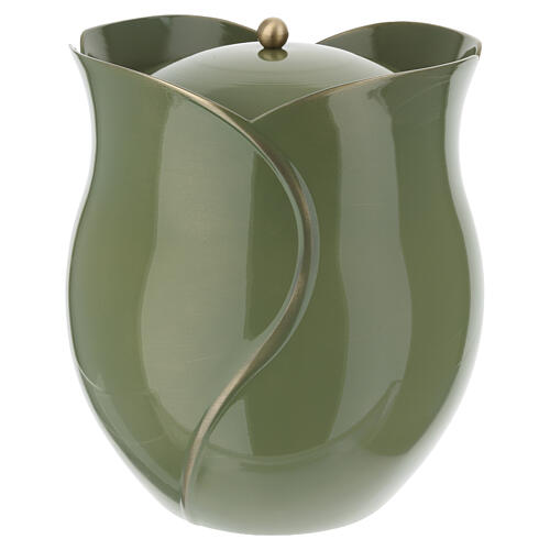 Aschenurne zur Aufbewahrung der Asche, gefertigt aus technischem Material mit grüner Oberfläche und einem Fassungsvermögen von 4 l.