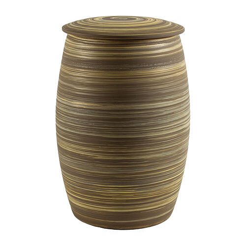Urne mit schlichtem Design, dekoriert mit eleganten Querstreifen in Braun und Ocker.