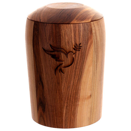 Urne, Nussbaumholz, ökologisch, mit Friedenstaube-Motiv – 28,5x19,5 cm, 5 Liter