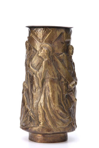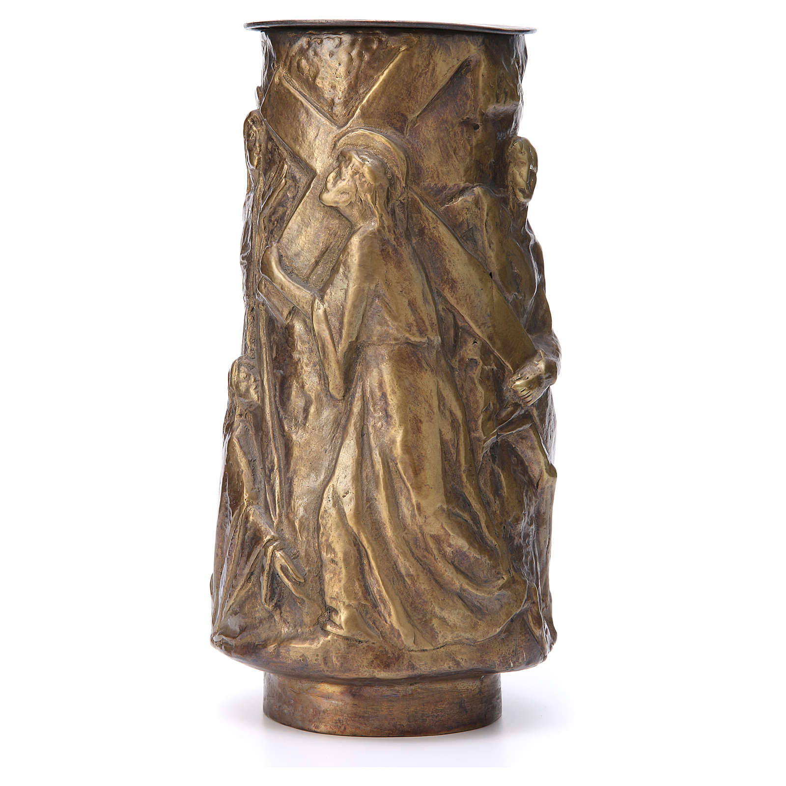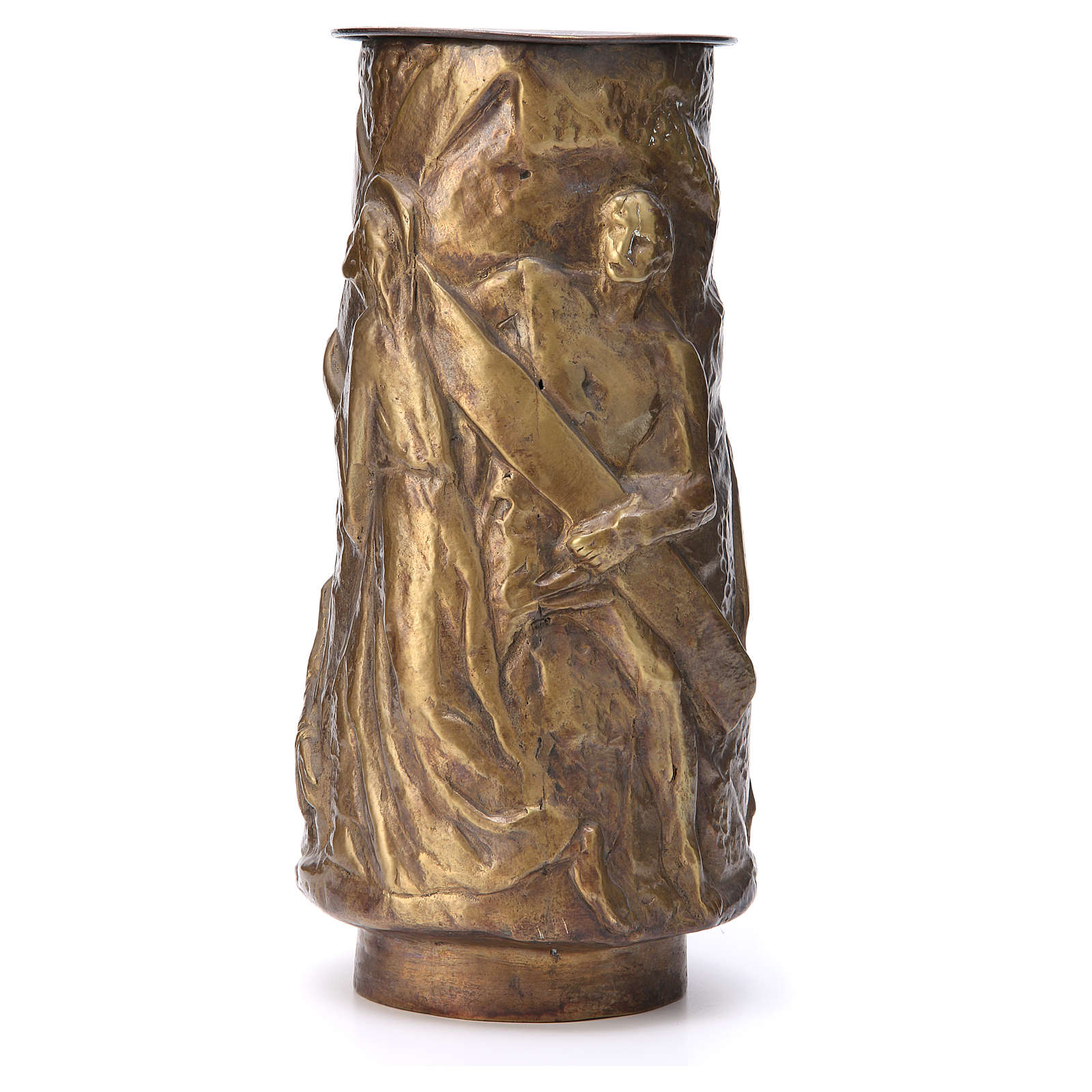 Grabvase mit Wasserbecken aus bronzefarbigen Messing
