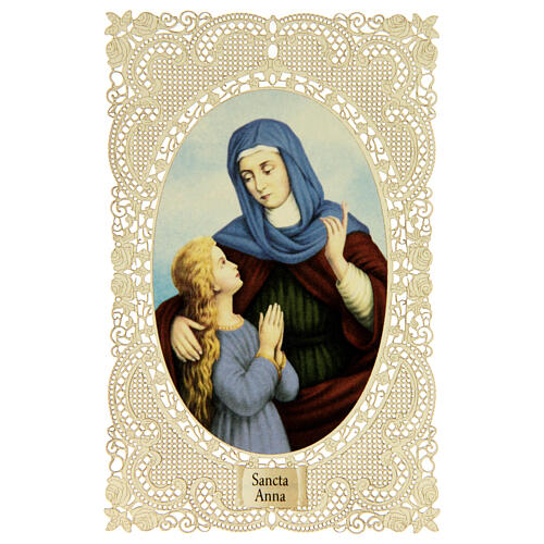 Spitzenbildchen, Heilige Anna, Heiligenbildchen mit Spitzendekor, 11 x 7 cm