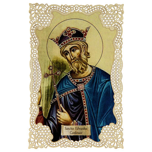 Spitzenbildchen, Heiliger Eduard, Heiligenbildchen mit Spitzendekor, 11 x 7 cm
