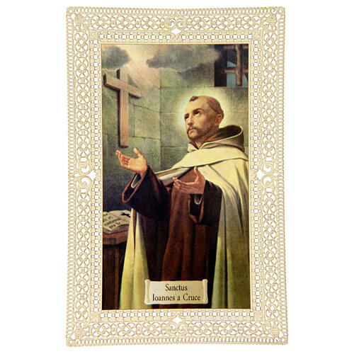 Spitzenbildchen, Heiliger Johannes vom Kreuz, Heiligenbildchen mit Spitzendekor, 11 x 7 cm