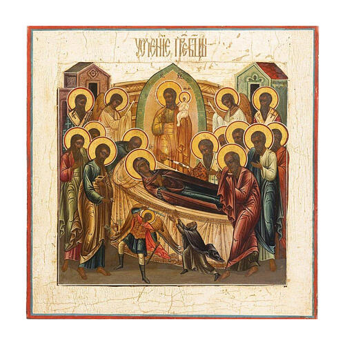 Alte russische Ikone "Entschlafung der Gottesmutter" – achtzehntes - neunzehntes Jahrhundert, 35 × 30 cm