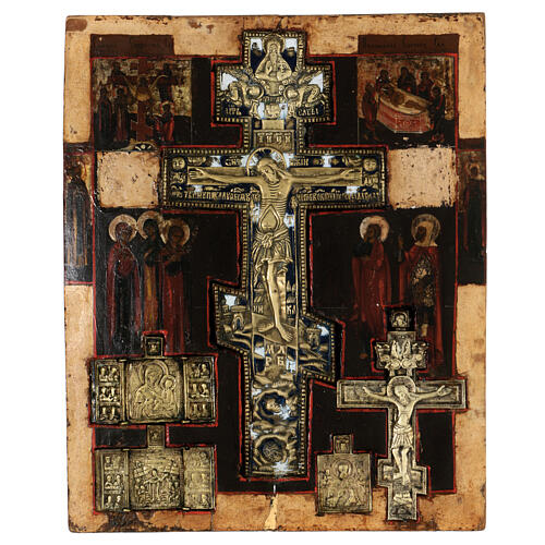 Alte russische Ikone „Kreuzigung“ – Staurothek, 18 Jh, 40 × 33 cm