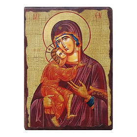Russische Ikone, Malerei und Découpage, Gottesmutter von Wladimir, 30x20 cm