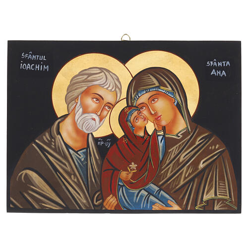 Ikone „Heiliger Joachim und Heilige Anna mit Maria“ – handgemalt, Rumänien, 30 × 25 cm