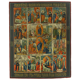 Russische Ikone, Zwölf-Feste-Ikone auf antiker Tafel, 52 x 42 cm