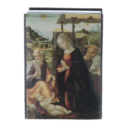 Russische Lackdose aus Papiermaché Geburt Christi 7x5 cm