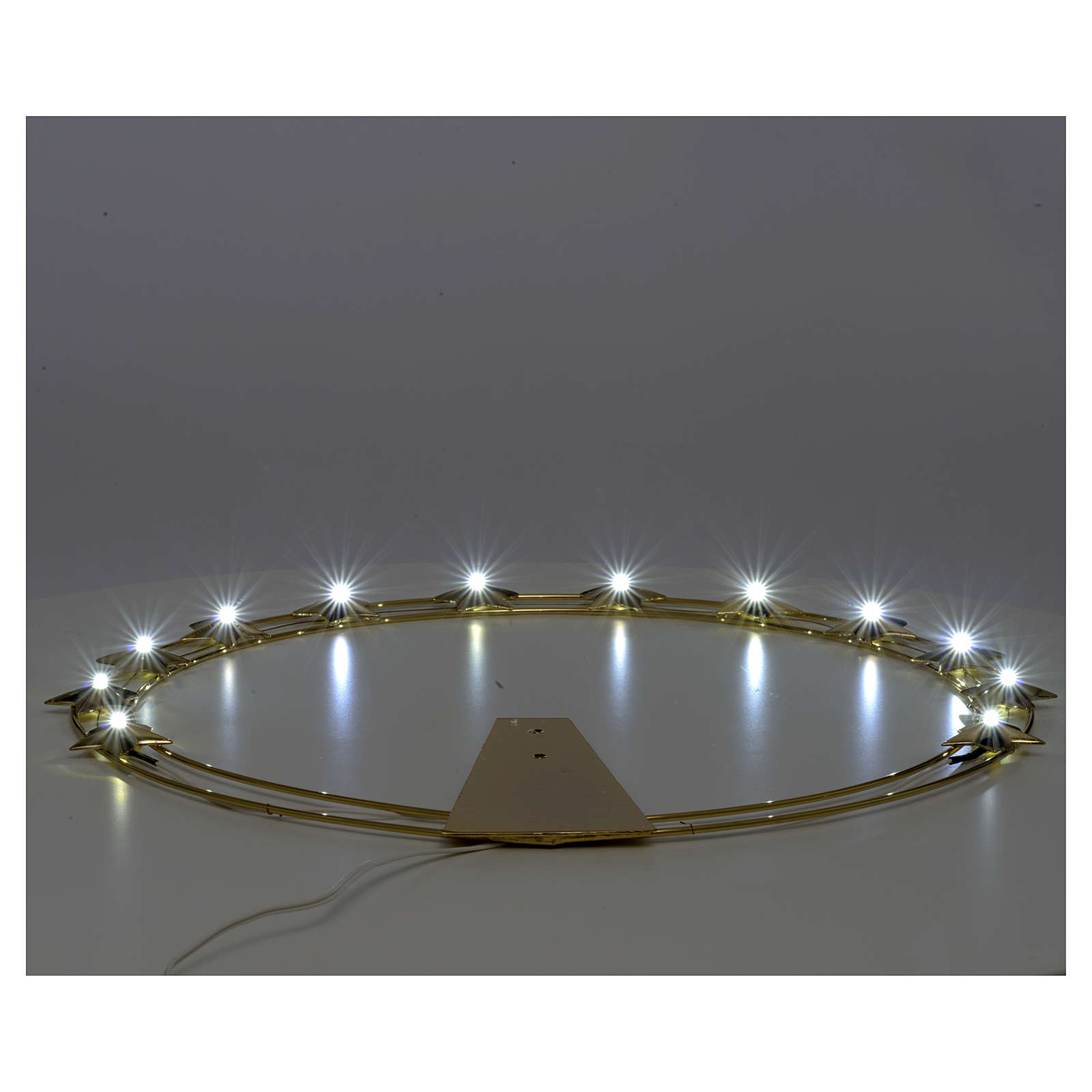 Heiligenschein aus vergoldetem Messing, mit LED-Lichtern.