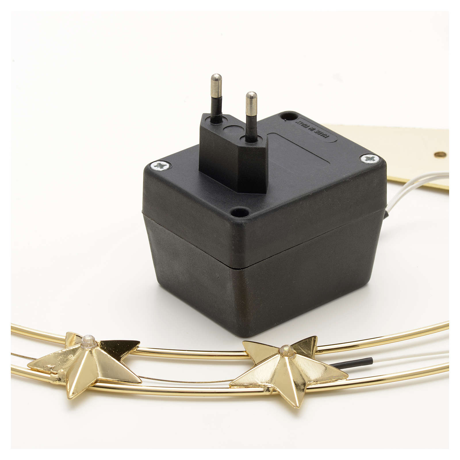 Der Heiligenschein hat 12 Sterne. In jedem ist ein LED-Licht integriert. Im Lieferumfang ist ein Transformator 202V/3.5V enthalten.