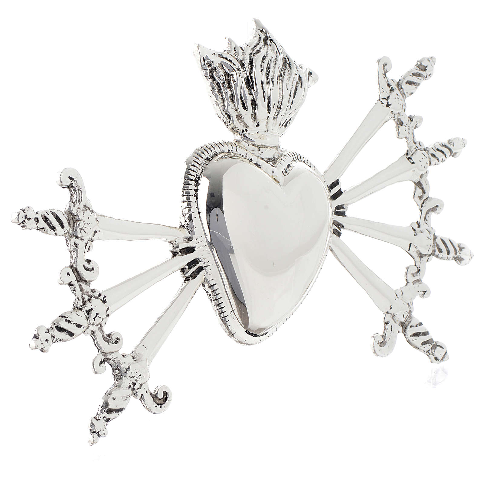 Herz mit 7 Schwertern aus Gußmessing versilbert