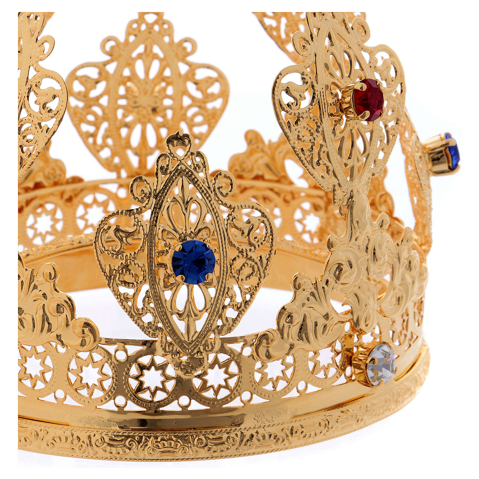Kleiner Krone für Statuen Metall und Steinen 10cm Durchmesser. Krone für Statuen realisiert aus vergoldeten Metall und verfeinert mit roten, blauen und weissen Steinen.