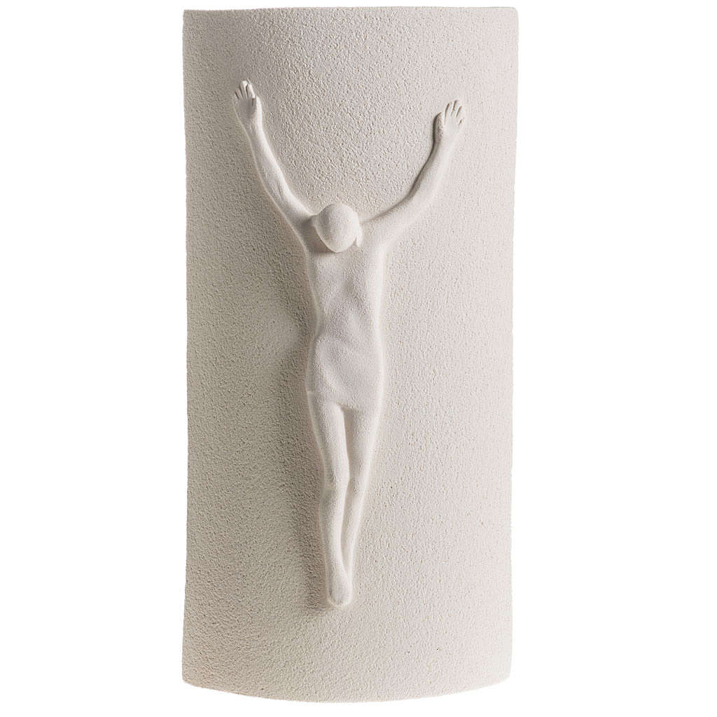 Ab sofort verfügbar Kruzifix auf Stele weissen Ton, 29,5cm. Der Ton wird zuerst handgearbeitet und dann bei über 1000°C gebrannt. Hochwertiges Produkt, realisiert bei Centro Ceramiche in Loppiano (Florenz).
